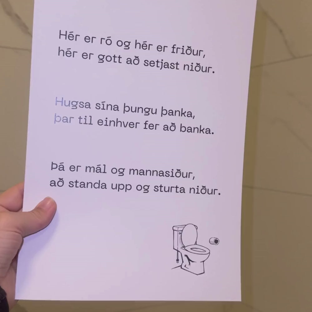 Fallegt og fyndið veggspjald sem fær gesti til að brosa.