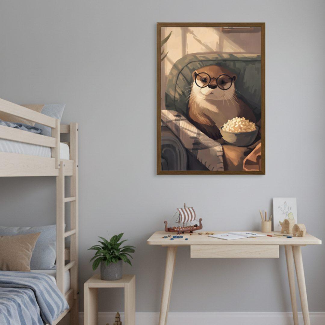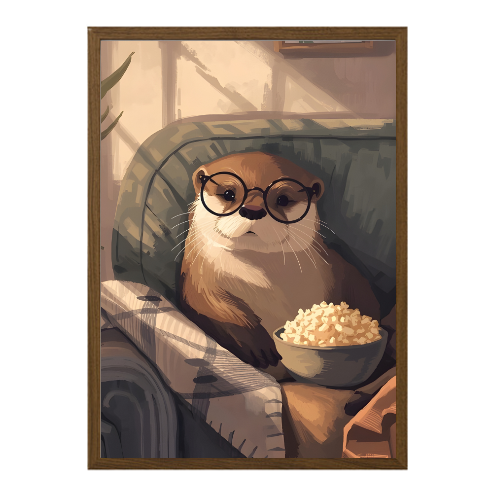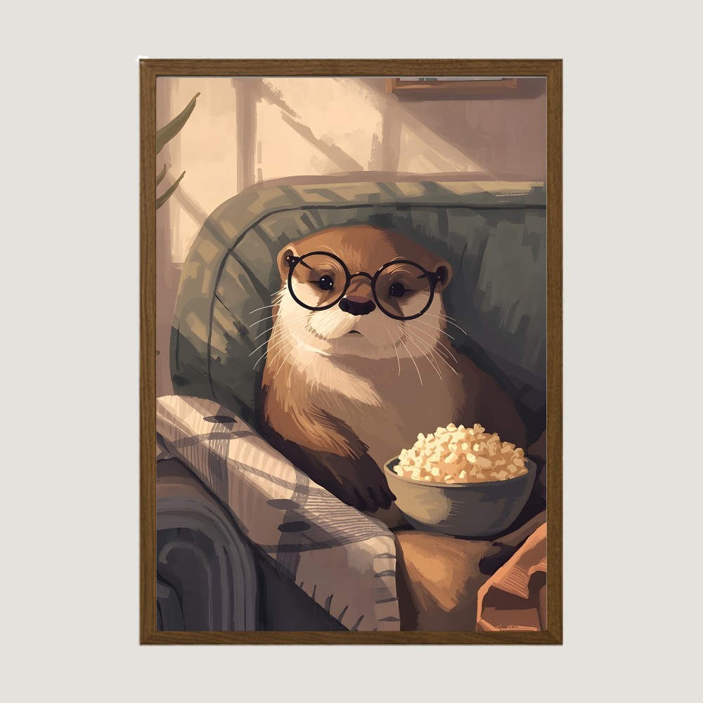 Mjúkir litir, hlý stemning og þessi skemmtilegi Otur sem hlammar sér í sófann með popp og gleraugu tilbúinn í kósíkvöldið.