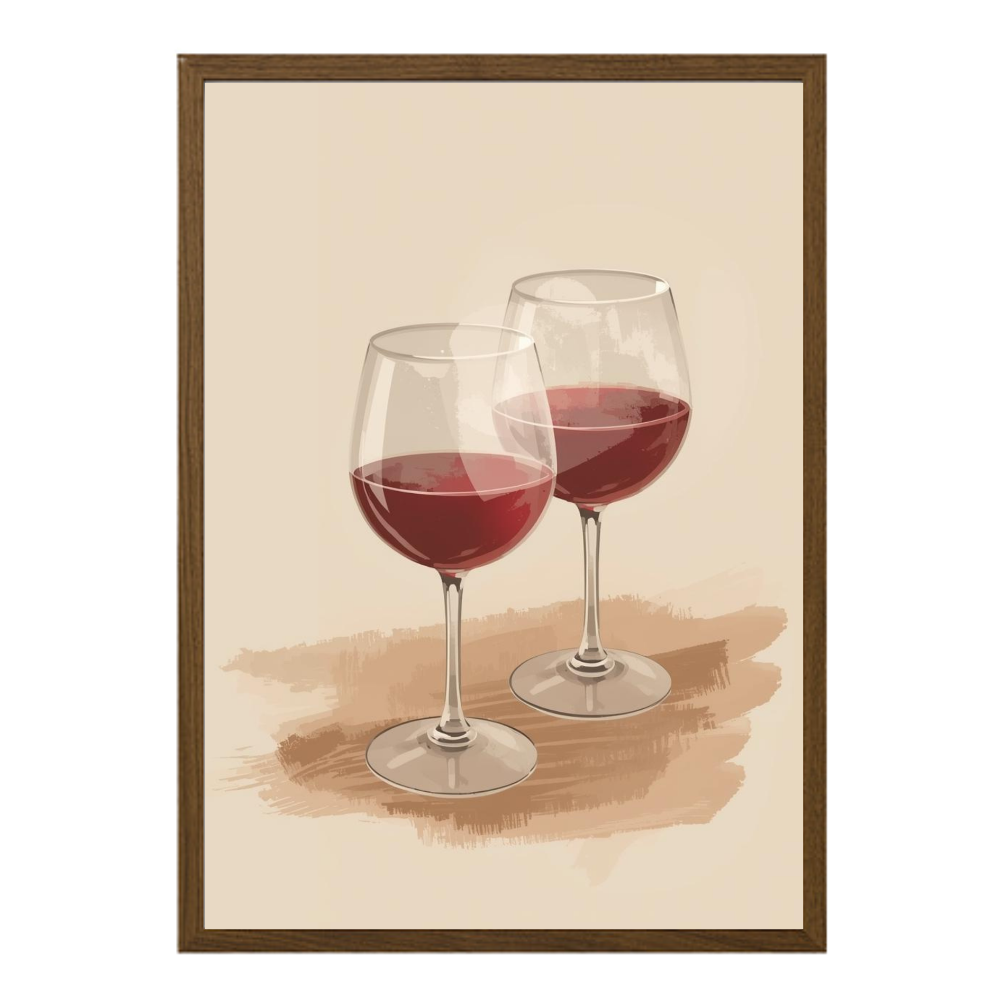 Tvö falleg rauðvínsglös sem fanga rólega kvöldstemningu og notalega nærveru.